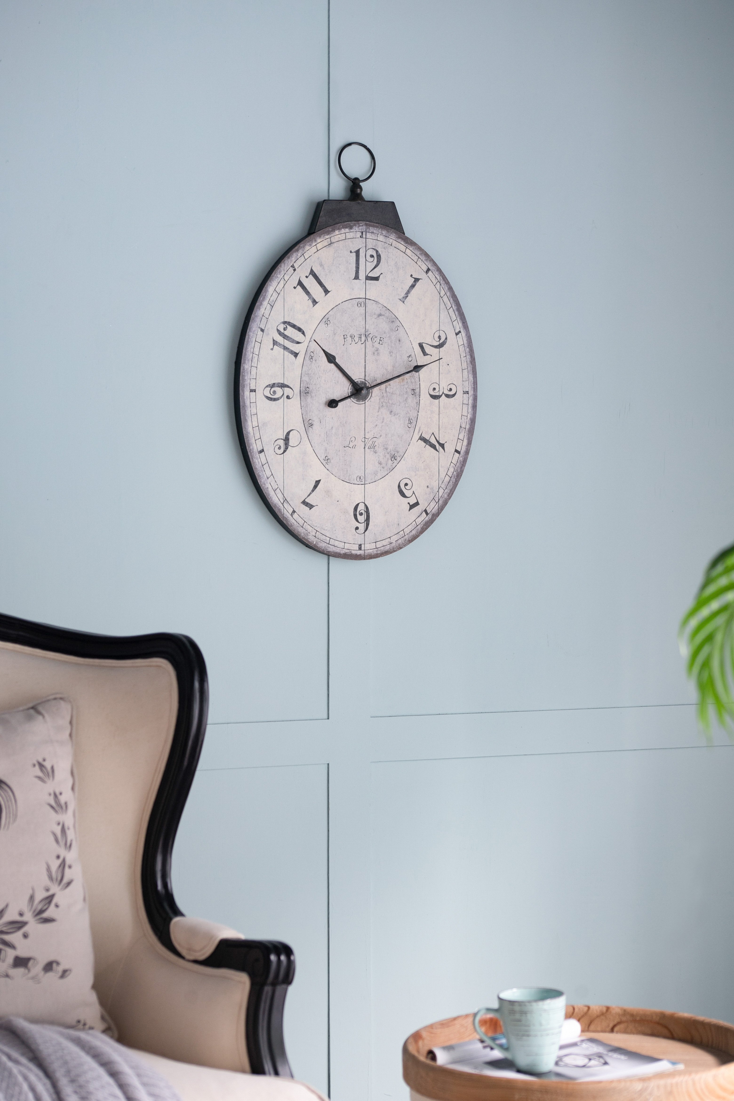With its simple clock face, decorative numerals, and weathered look, the Thaddeus Oval Wall Clock from the Southern Living Collection adds an understated elegance to any space. Hang above an entryway table, on a kitchen wall, or above the living room mantle for a warm yet sophisticated look. The Thaddeus Wall Clock offers a casual, refined look that fits a variety of decors.