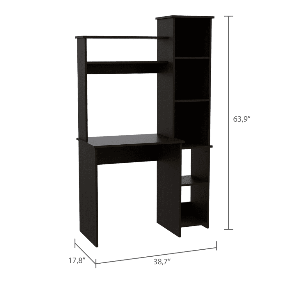 DEPOT E-SHOP Aramis Desk, Five Shelves, Two Superior Shelves, Black