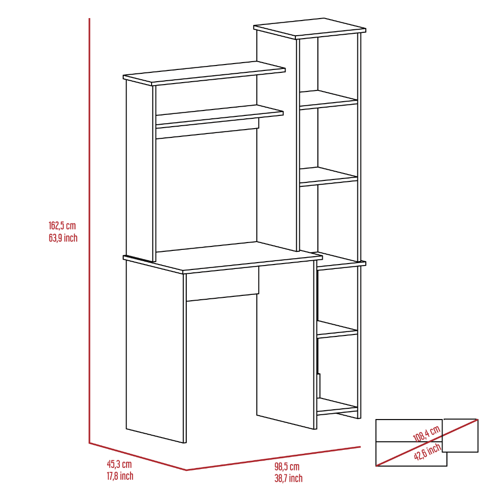 Featuring a side bookcase with Five open shelves for books, decor or files