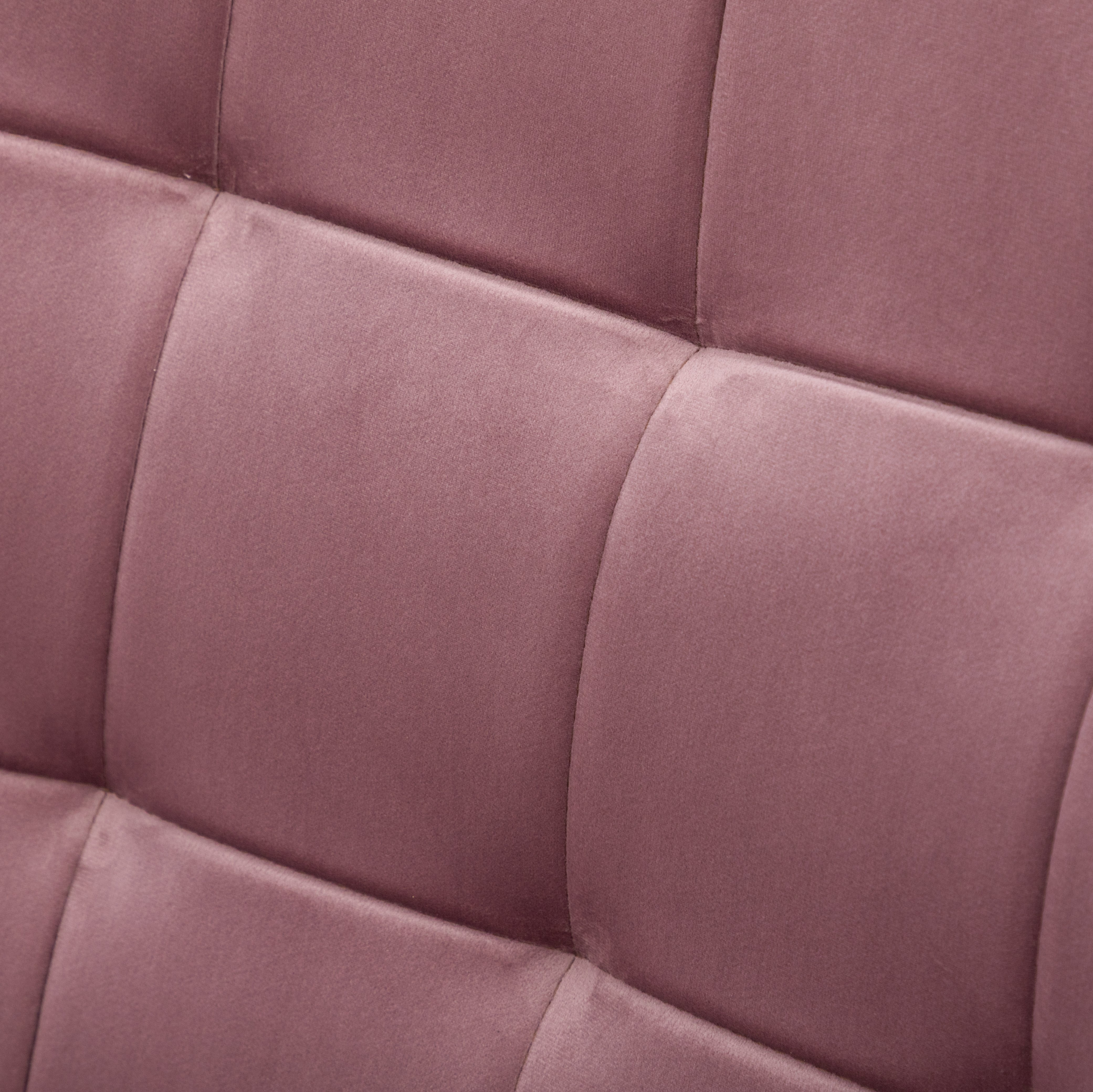 Plush mauve polyester upholstered seat, supported by strong and durable solid rubber wood frame