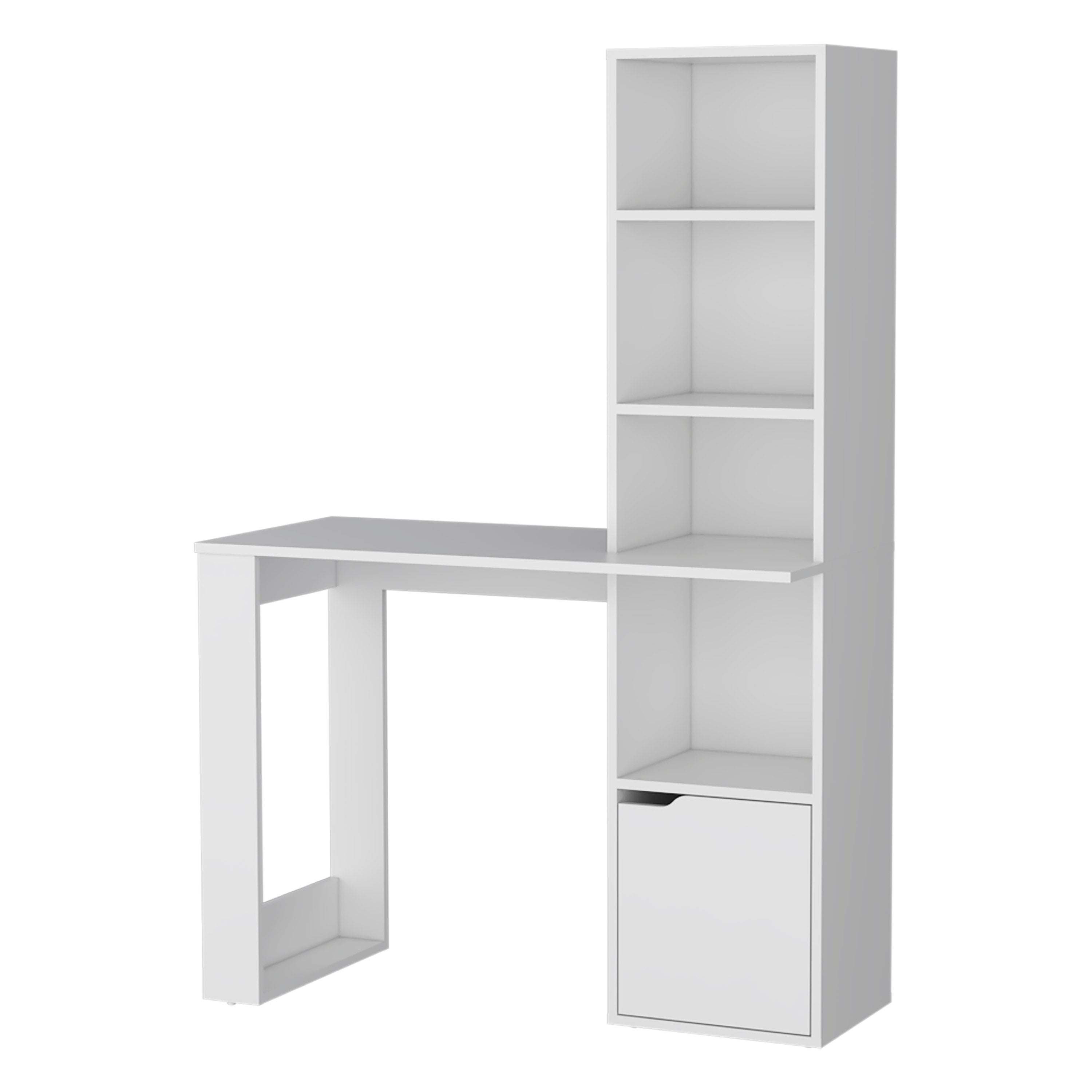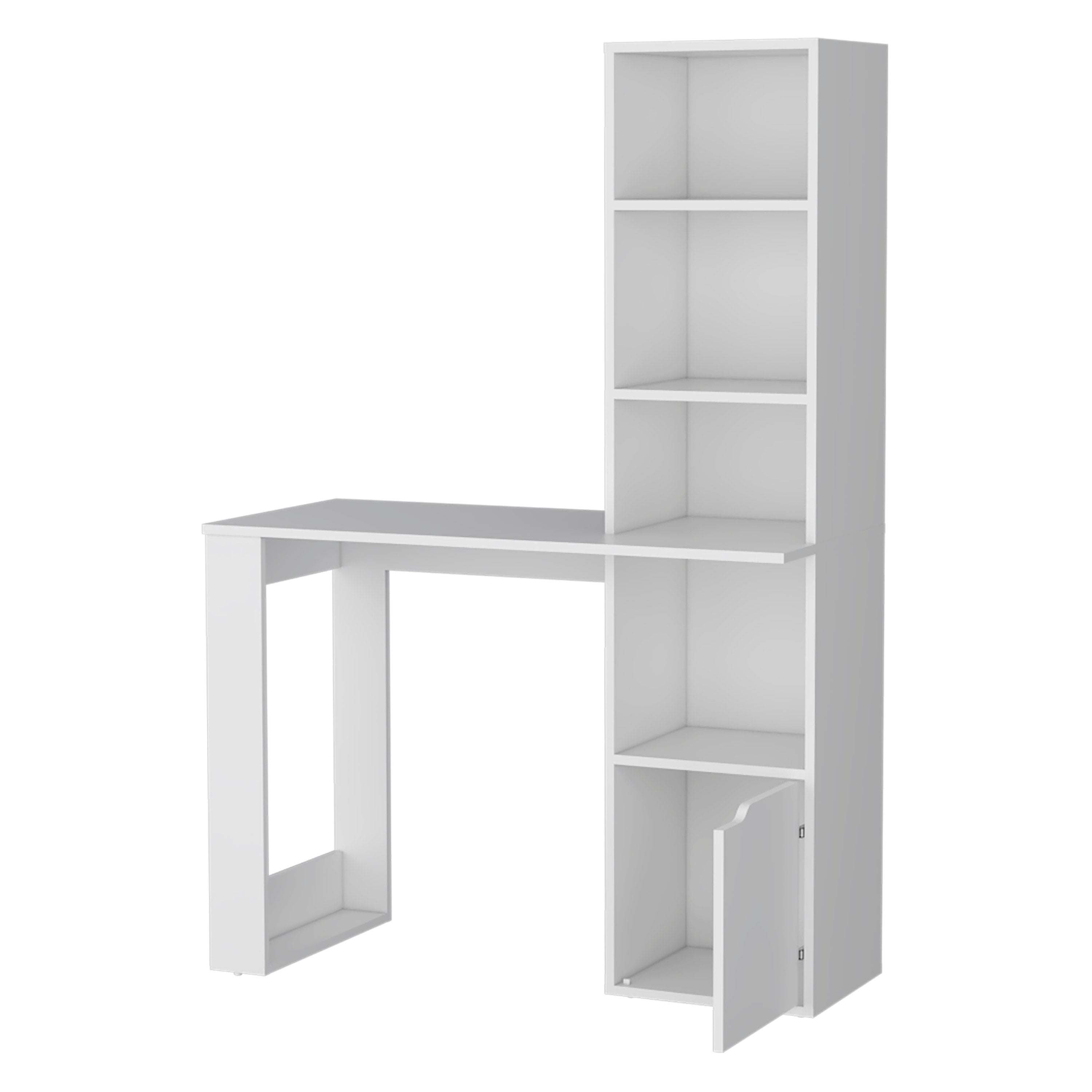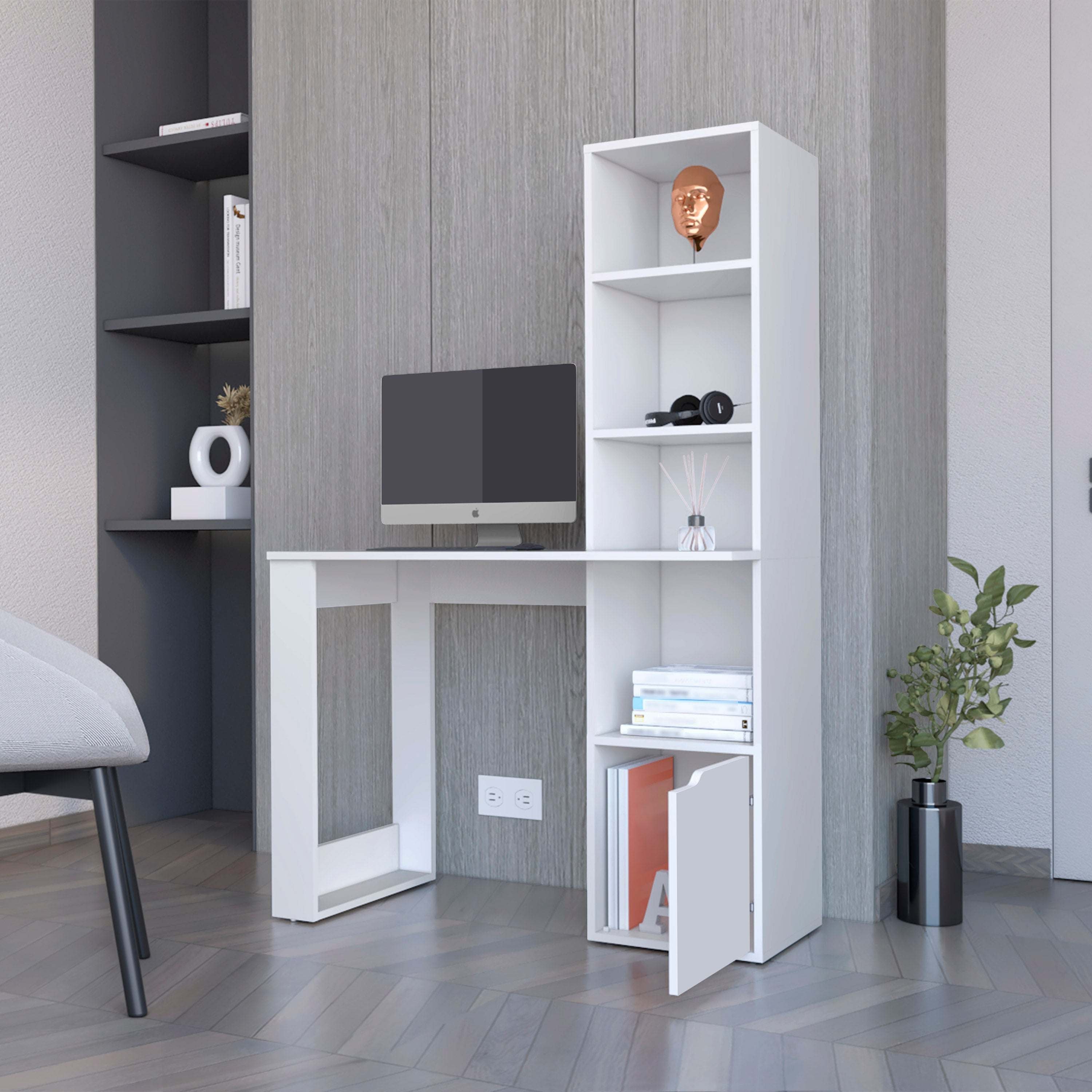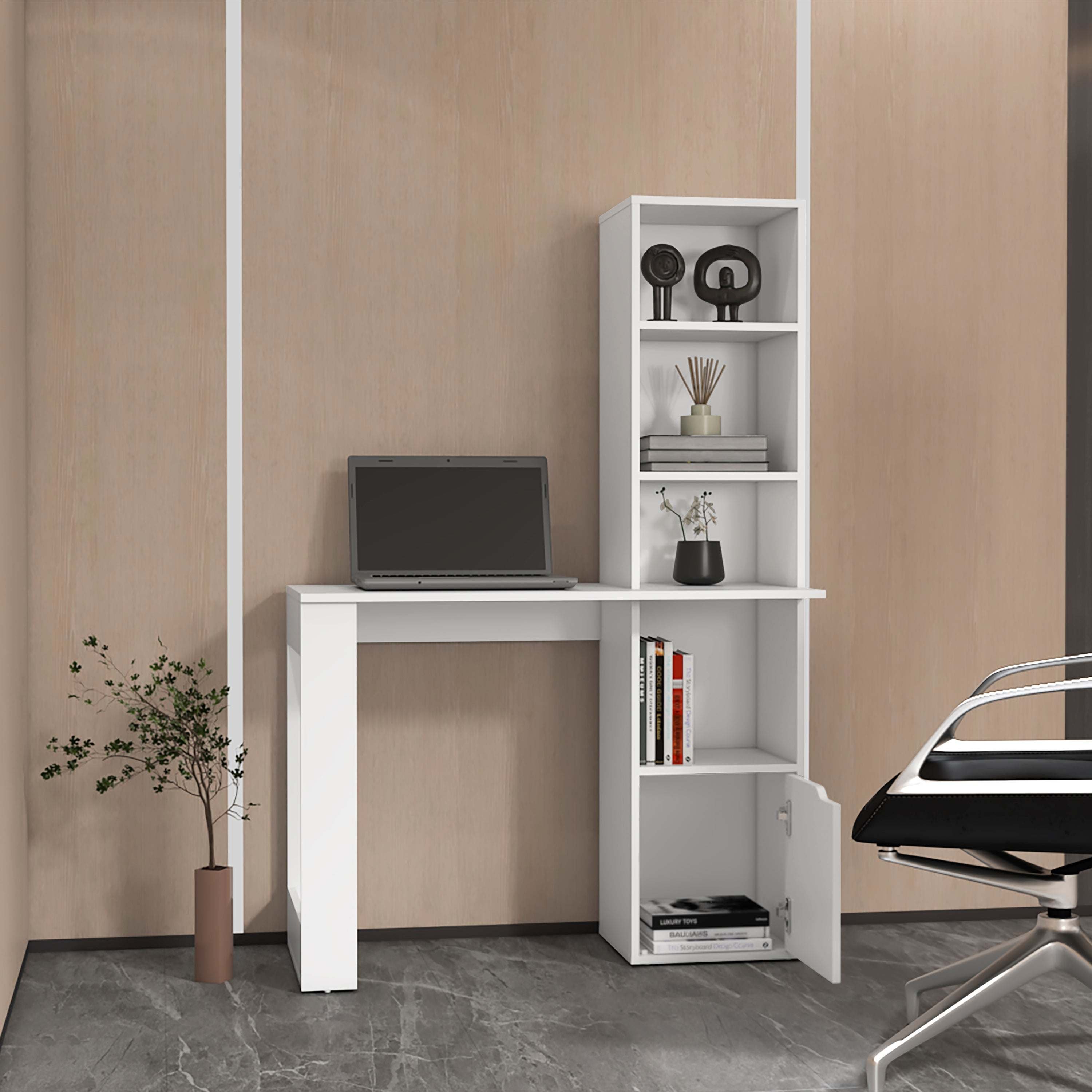 Peterson Computer Desk with 4-Tier Bookcase and 1-Door Cabinet White