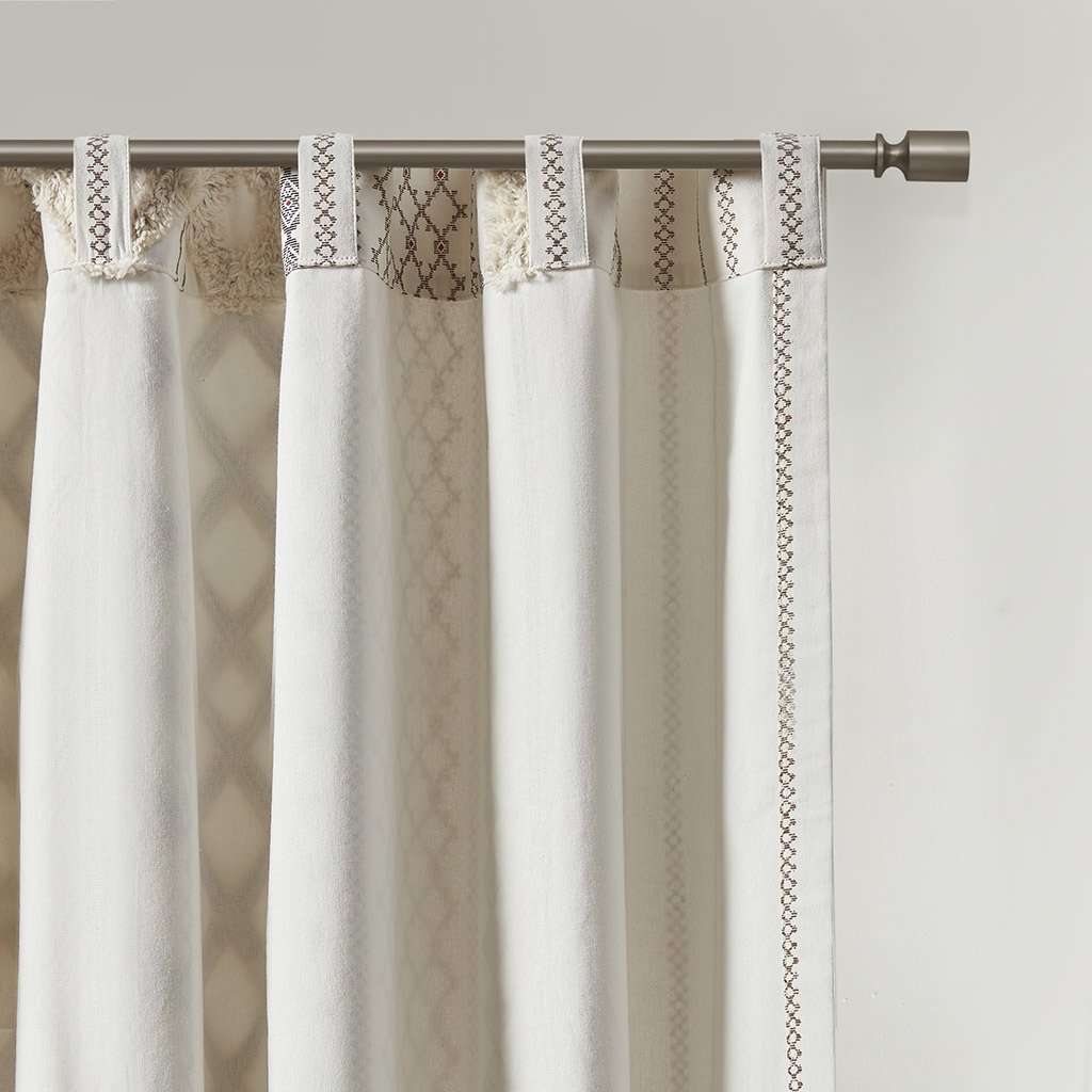The INK+IVY Imani Cotton Printed Window Panel with Chenille Stripe and Lining offers a chic and casual update to your home. This ivory window panel features a geometric print with a tufted chenille stripe trim, for a textured artisanal look and feel. A lightweight white cotton lining on the reverse softly filters light, while providing better drapability and added privacy. In addtition, this 100% cotton curtain panel is also OEKO-TEX certified, meaning it does not contain any harmful substances or chemicals for the best in quality comfort and wellness. Each panel is finished with a rod pocket top for easy hanging, and back tabs for a more clean and tailored finish. This window panel is sold as a single and 2 window panels must be purchased to cover any standard size window. Complete the look with coordinating bedding sets and bath decor, available and sold separately.