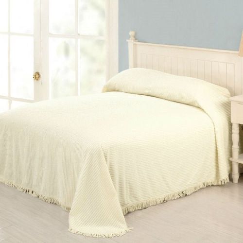 • King size Ivory Bedspread 100-Percent Cotton Chenille with Fringed Edges