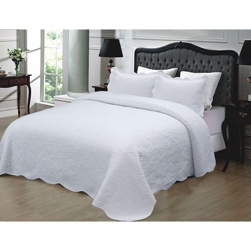 This King size 3-Piece Quilted Cotton Bedspread in White with Shams would be a great addition to your home. It has a 100% cotton solid quilted embroidery bedspread available in many colors.