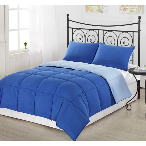 Whether you are looking for a comforter to match your diehard obsession with a sports team or just like to change things up, this King/CAL King size 3-Piece Light Blue/Royal Blue Microfiber Comforter Set with 2 Shams is for you! This comforter is filled with down alternative fiber for those of you who are allergic to feathers but long for the warmness, style and coziness of a down filled comforter. This Comforter has all the right ingredients; Soft, Colorful, Comfy and AFFORDABLE. The Reversible Down Alternative Comforter is made from micro fiber and is as soft as goose down. Lastly, it is constructed using a box stitching design to avoid any shifting of the fill. Machine washable! You have our word that we will do everything that we can to make sure returning your product is not necessary. However, should the need arise for any reason, please contact us to obtain authorization for a full refund or exchange if you have any issues with your product.