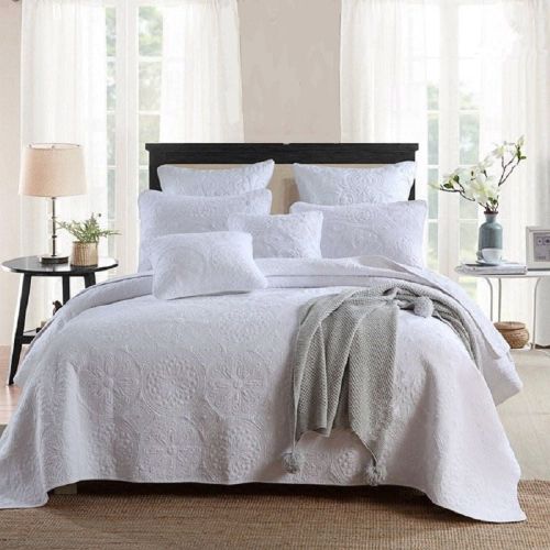 Retro design add to your romantic bedroom. This King size White 3-Piece Quilt Bedspread Set 100-Percent Cotton Floral Medallion Pattern, it can be used as quilt in spring and summer, bedspread or sheets used in the winter.