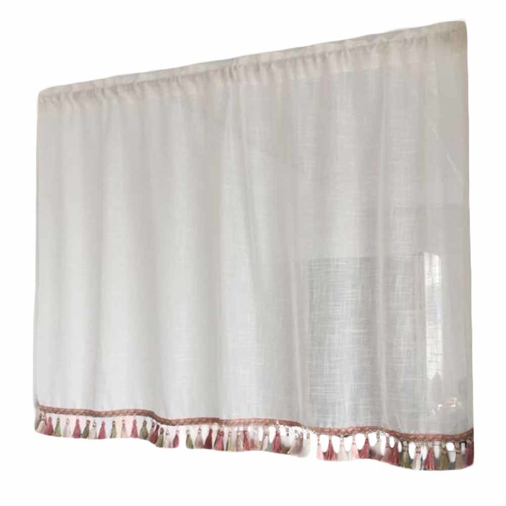 Home > Semi-Sheer Cafe Curtain Tassels Short Kitchen Curtain Half Window Curtain, White, 57x24 inch