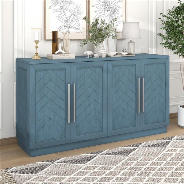 Home > Sideboard with 4 Doors Large Storage Space Buffet Cabinet with Adjustable Shelves and Silver Handles for Kitchen, Dining Room, Living Room (Antique Bl
