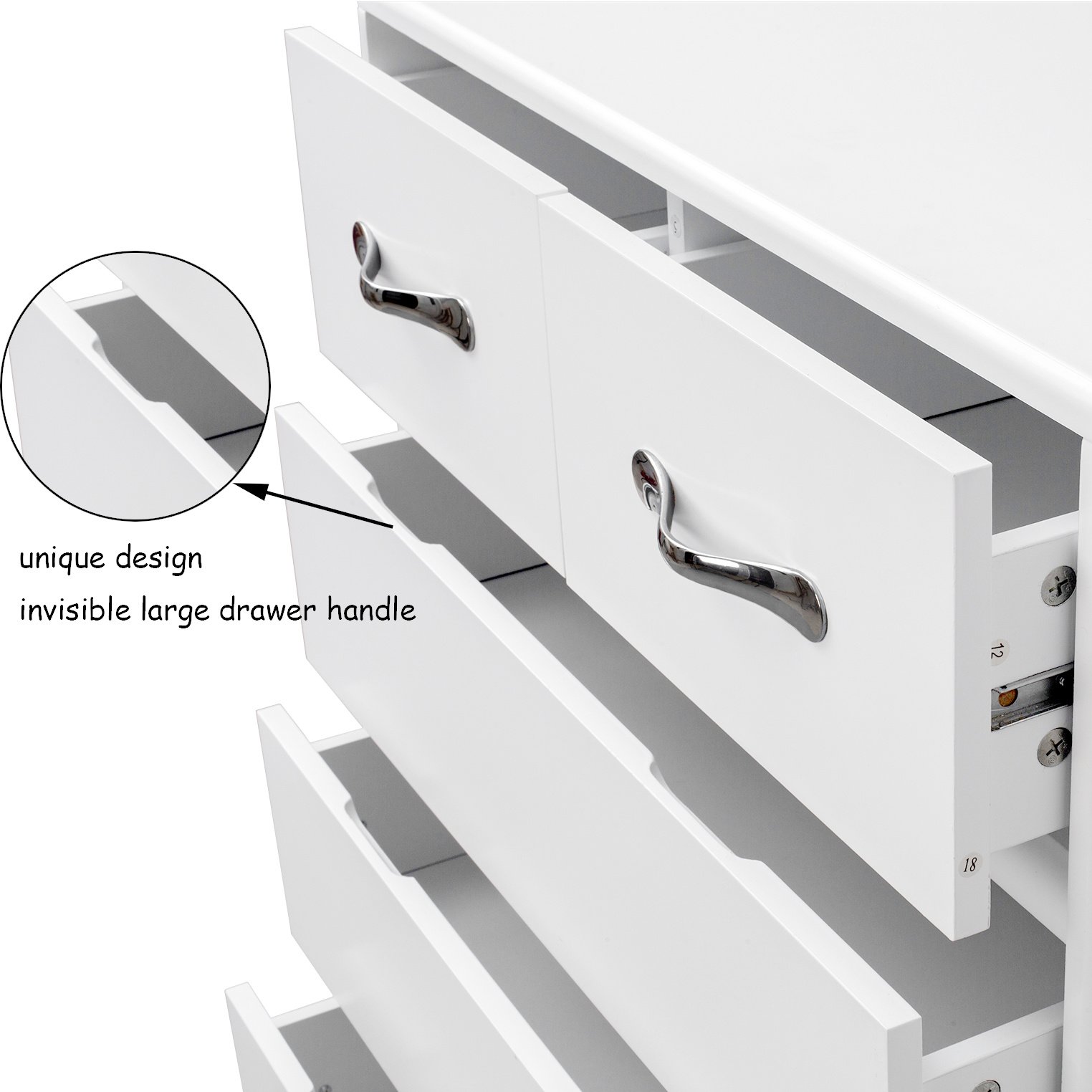 White color cabinet with 6 drawers.Different sizes drawers can meet your different requires to placing things.