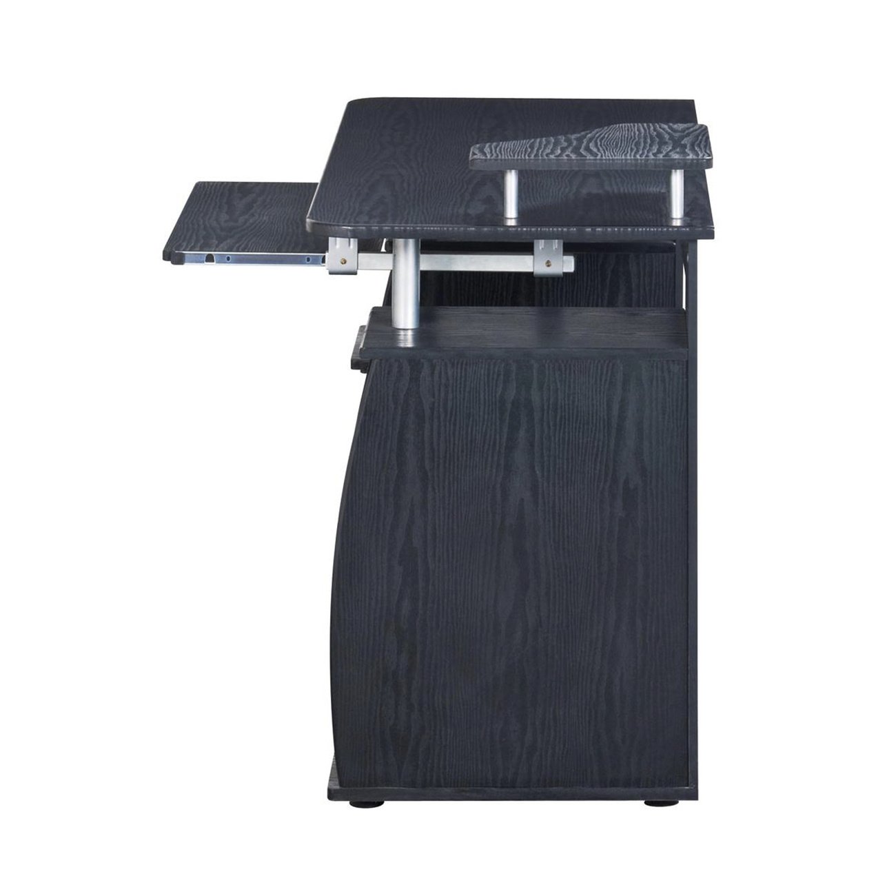 Techni Mobili Complete Computer Workstation Desk With Storage, EspressoThe Techni Mobili Dual Complete Computer Workstation Desk includes an elevated accessory shelf, slide-out keyboard and accessory shelves - both equipped with safety stops, 2 storage drawers, and an open CPU compartment with a shelf that can be moved up, down or completely removed. The elevated desktop provides additional storage above the pedestals. The slide-out accessory shelf and CPU compartment each have rear cable openings. The desktop has an 80lbs weight capacity, while the shelves can each hold up to 30lbs, and the drawers each have a 30lbs weight capacity. This amazing multifunctional desk is made with MDF panels in Espresso color, with a moisture laminate veneer. It's stylish frames are made of scratch-resistant powder-coated steel, adding elegance to it's fine design. Color: Espresso