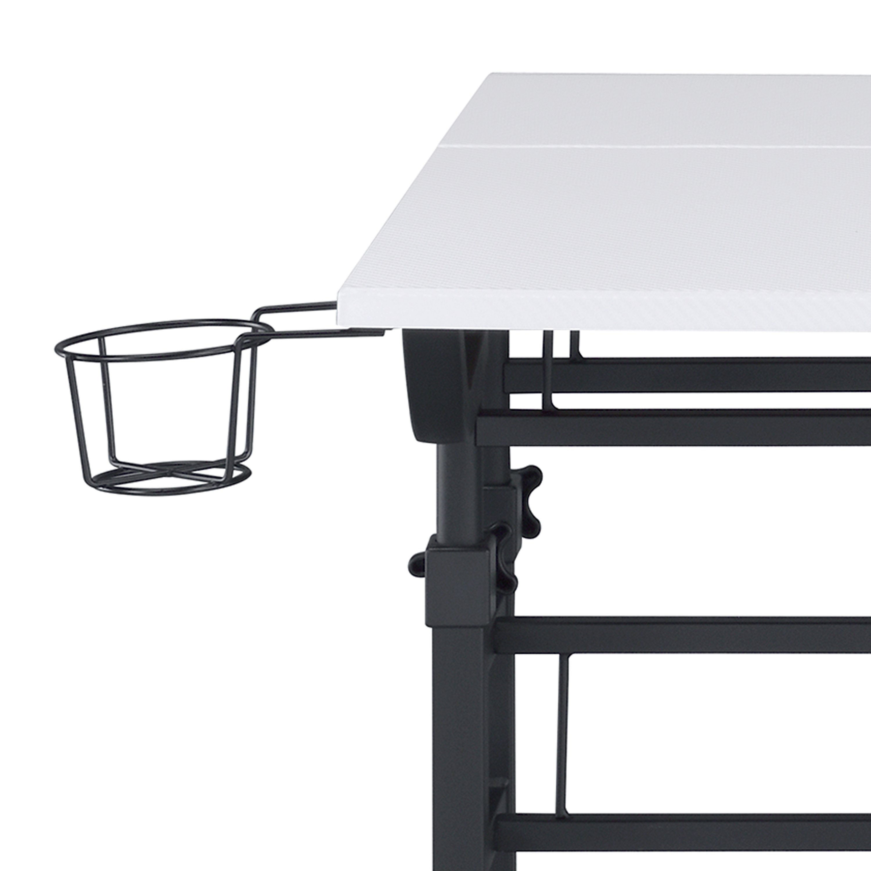 Techni Mobili Rolling Writing Desk with Height Adjustable Desktop and Moveable Shelf, WhiteMix industrial and modern styles together with this Techni Mobili Rolling and Adjustable Writing Desk. This desk is perfect for home-office spaces with its small footprint and offers option of 2 separate desktops independent levels with ample space that includes adjustable height mechanism. The finish coordinates with almost any decor while fiber-like texture tabletop surface and powder-coated metal frame and legs that give this desk a sturdy build along with a fun design. It includes front wheels with locking mechanism that let you swiftly glide in a home office space. The desktop is large enough to hold your laptop, notebooks, and office essentials while the other tabletop surface can be used as riser to keep items within reach. It comes with integrated headphone and cup holders that can be easily installed on right and left. It is easy to assemble, and comes with 5-year limited warranty.