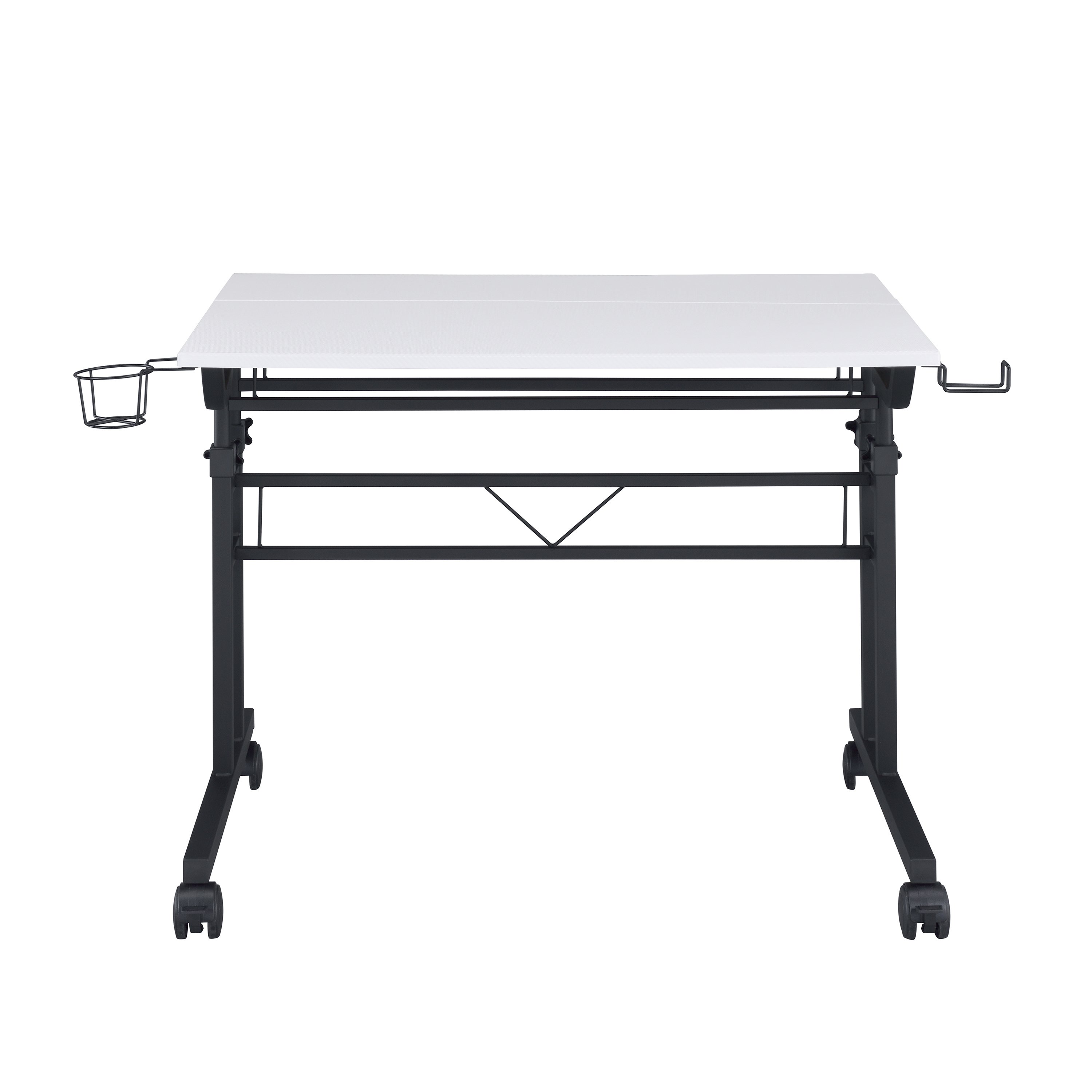 Rolling writing desk with front locking wheels